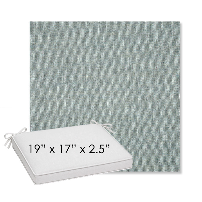 19" x 17" x 2.5" Thick outdoor dining chair seat cushion designed for a simple, ready-to-order fit. Features a boxed construction with piping, fabric ties, and zipper opening. Made in 700+ Sunbrella® fabrics for long-lasting outdoor performance.
