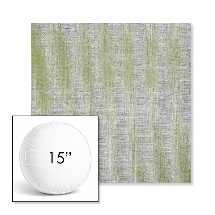 Custom 15" Round Boxed Sunbrella® Outdoor Pillow (3" Thick) available in over 700 Sunbrella® fabrics. Comes standard with piping. Optional covered button detail. Each pillow includes a zipper opening and premium outdoor insert for comfort, durability, and long-lasting outdoor performance.