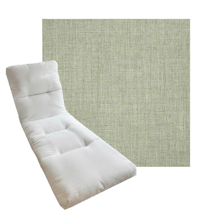 Tufted Style Chaise Lounge Cushion. Universal Chaise Lounge Replacement Cushions in 3 common sizes. Simple center seam design. No piping. Designed to accommodate aluminum, wood, and PVC furniture. Includes fabric ties at back and hinge. Polyester/densified fiber fill.