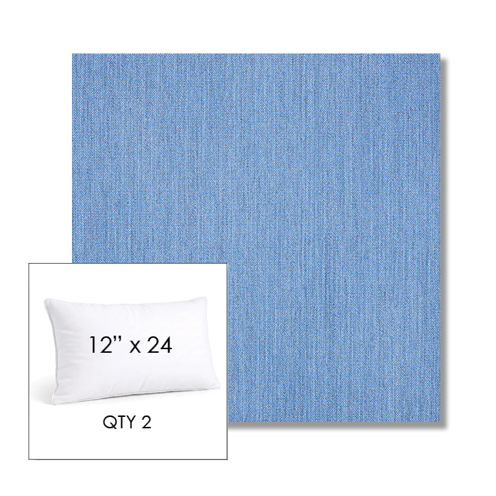 Custom 12" x 24" Lumbar Pillow SET OF TWO, square outdoor pillows available in over 700 Sunbrella® fabrics. Choose piping or knife-edge finish with optional covered button detail. Each pillow includes a zipper opening and premium outdoor insert for comfort, durability, and long-lasting outdoor performance.