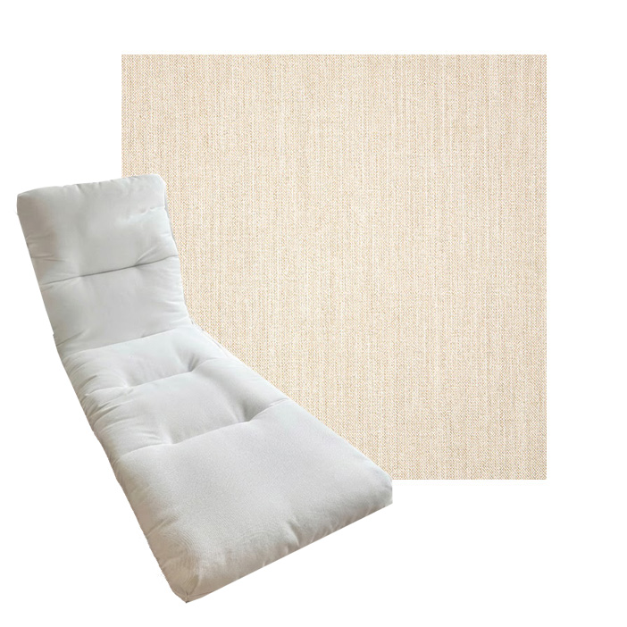 Tufted Style Chaise Lounge Cushion. Universal Chaise Lounge Replacement Cushions in 3 common sizes. Simple center seam design. No piping. Designed to accommodate aluminum, wood, and PVC furniture. Includes fabric ties at back and hinge. Polyester/densified fiber fill.
