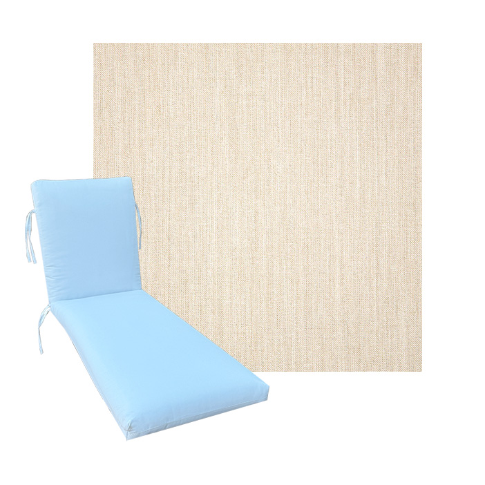 Classic Style Chaise Lounge Cushion. Premium Universal Chaise Lounge Replacement Cushions in 3 common sizes. Simple center seam design. No piping. Designed to accommodate aluminum, wood, and PVC furniture. Includes fabric ties at back and hinge. Polyester/densified fiber fill.