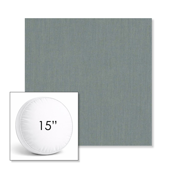 Custom 15" Round Boxed Sunbrella® Outdoor Pillow (3" Thick) available in over 700 Sunbrella® fabrics. Comes standard with piping. Optional covered button detail. Each pillow includes a zipper opening and premium outdoor insert for comfort, durability, and long-lasting outdoor performance.
