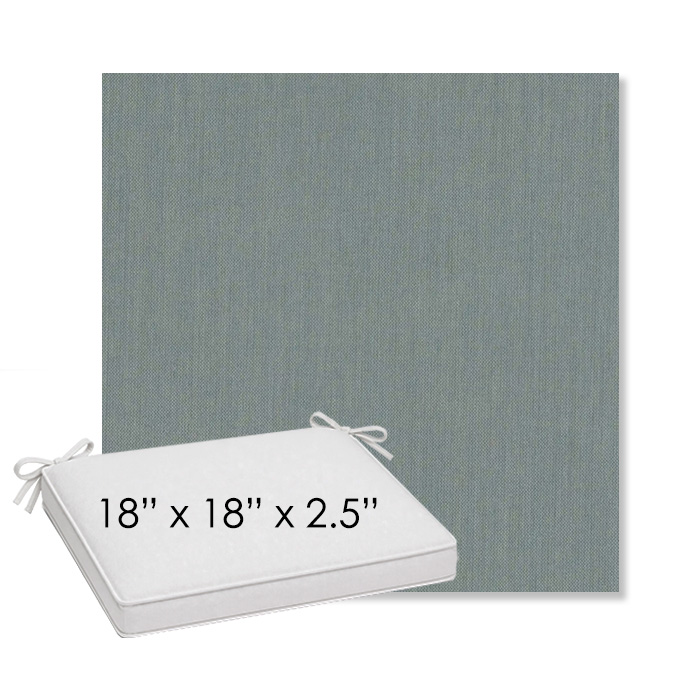 18" x 18" x 2.5" Thick outdoor dining chair seat cushion designed for a simple, ready-to-order fit. Features a boxed construction with piping, fabric ties, and zipper opening. Made in 700+ Sunbrella® fabrics for long-lasting outdoor performance.