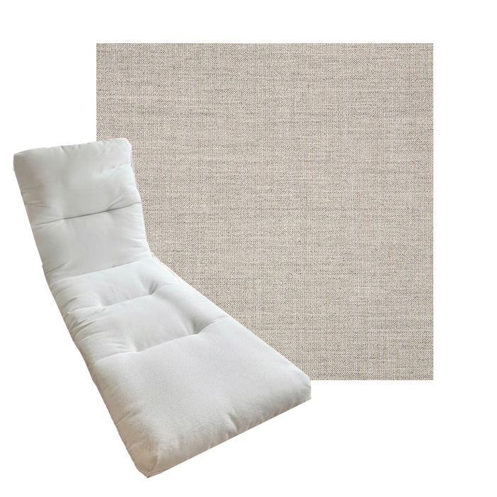 Tufted Style Chaise Lounge Cushion. Universal Chaise Lounge Replacement Cushions in 3 common sizes. Simple center seam design. No piping. Designed to accommodate aluminum, wood, and PVC furniture. Includes fabric ties at back and hinge. Polyester/densified fiber fill.