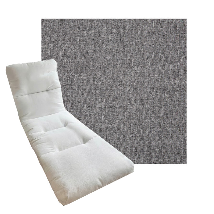 Tufted Style Chaise Lounge Cushion. Universal Chaise Lounge Replacement Cushions in 3 common sizes. Simple center seam design. No piping. Designed to accommodate aluminum, wood, and PVC furniture. Includes fabric ties at back and hinge. Polyester/densified fiber fill.