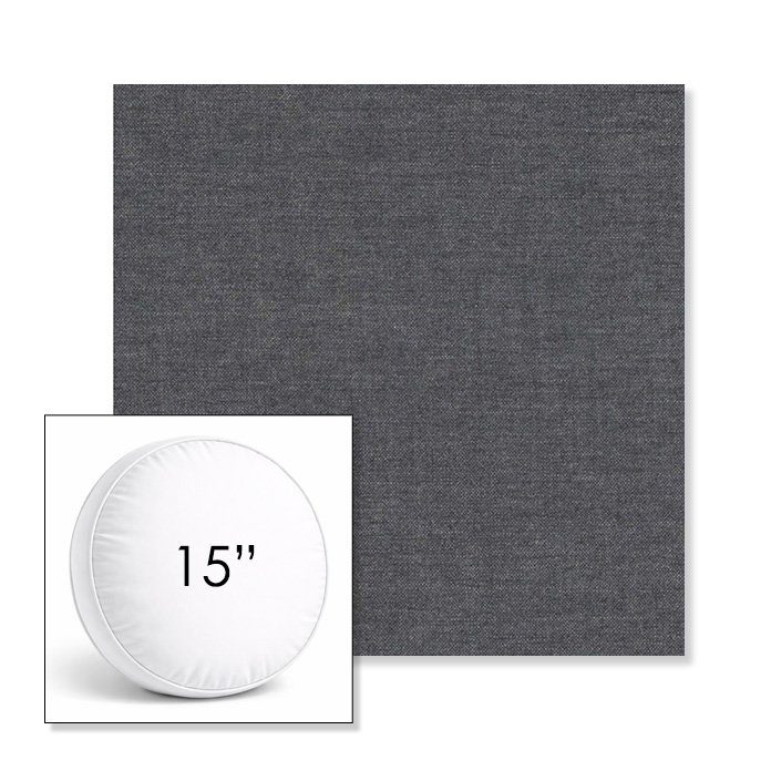 Custom 15" Round Boxed Sunbrella® Outdoor Pillow (3" Thick) available in over 700 Sunbrella® fabrics. Comes standard with piping. Optional covered button detail. Each pillow includes a zipper opening and premium outdoor insert for comfort, durability, and long-lasting outdoor performance.