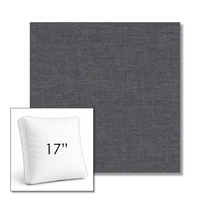 Custom 17" Square Boxed Sunbrella® Outdoor Pillow (3" Thick) available in over 700 Sunbrella® fabrics. Comes standard with piping. Optional covered button detail. Each pillow includes a zipper opening and premium outdoor insert for comfort, durability, and long-lasting outdoor performance.