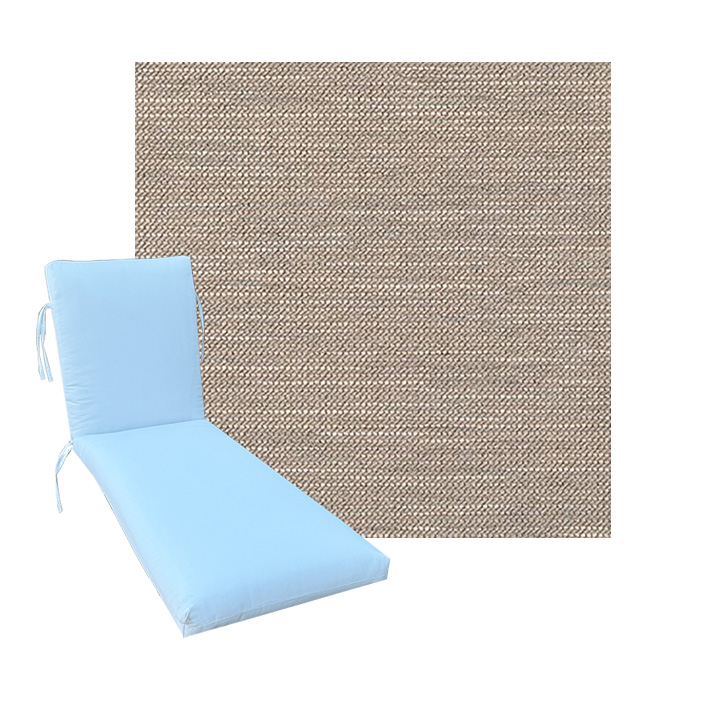Classic Style Chaise Lounge Cushion. Premium Universal Chaise Lounge Replacement Cushions in 3 common sizes. Simple center seam design. No piping. Designed to accommodate aluminum, wood, and PVC furniture. Includes fabric ties at back and hinge. Polyester/densified fiber fill.