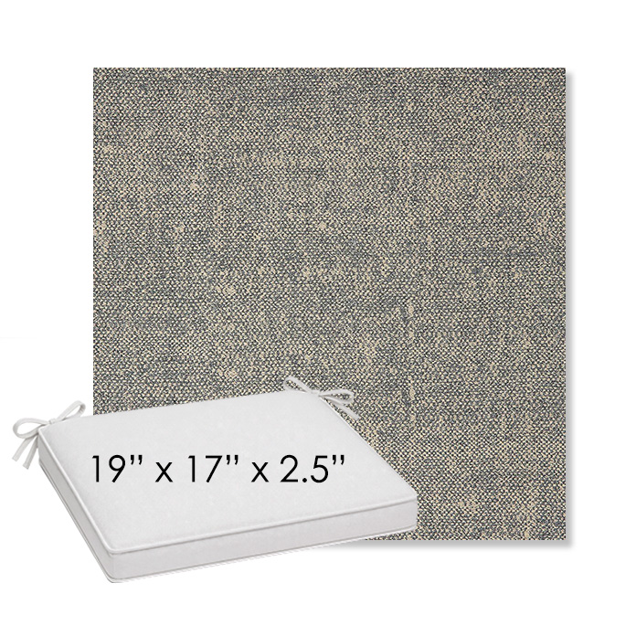 19" x 17" x 2.5" Thick outdoor dining chair seat cushion designed for a simple, ready-to-order fit. Features a boxed construction with piping, fabric ties, and zipper opening. Made in 700+ Sunbrella® fabrics for long-lasting outdoor performance.