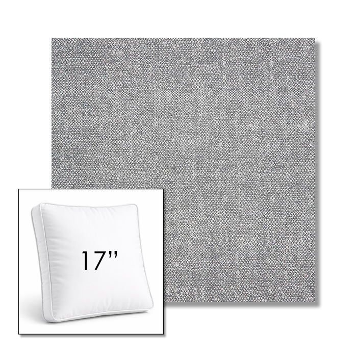 Custom 17" Square Boxed Sunbrella® Outdoor Pillow (3" Thick) available in over 700 Sunbrella® fabrics. Comes standard with piping. Optional covered button detail. Each pillow includes a zipper opening and premium outdoor insert for comfort, durability, and long-lasting outdoor performance.