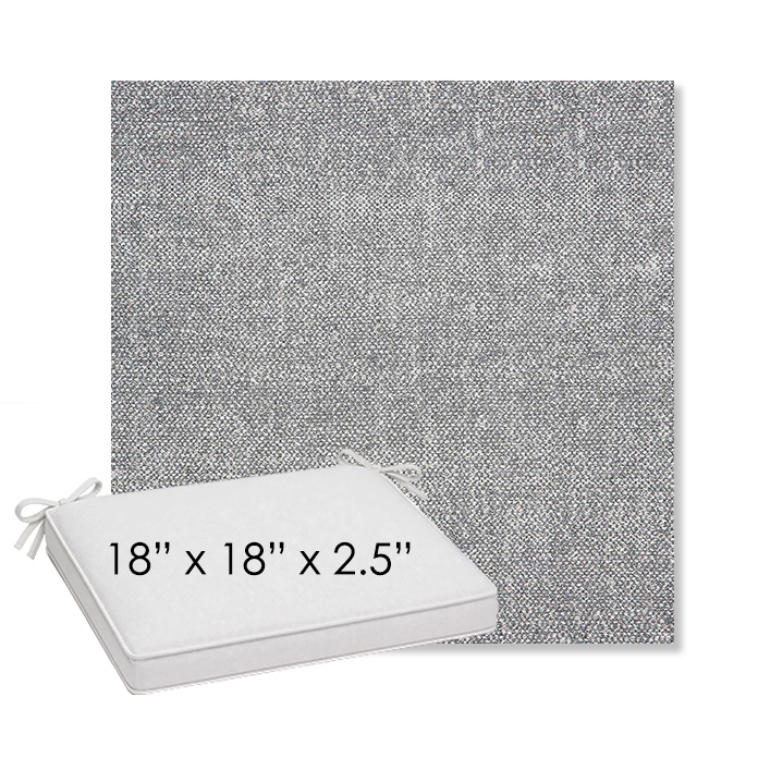 18" x 18" x 2.5" Thick outdoor dining chair seat cushion designed for a simple, ready-to-order fit. Features a boxed construction with piping, fabric ties, and zipper opening. Made in 700+ Sunbrella® fabrics for long-lasting outdoor performance.