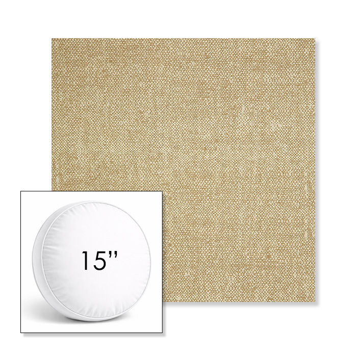 Custom 15" Round Boxed Sunbrella® Outdoor Pillow (3" Thick) available in over 700 Sunbrella® fabrics. Comes standard with piping. Optional covered button detail. Each pillow includes a zipper opening and premium outdoor insert for comfort, durability, and long-lasting outdoor performance.