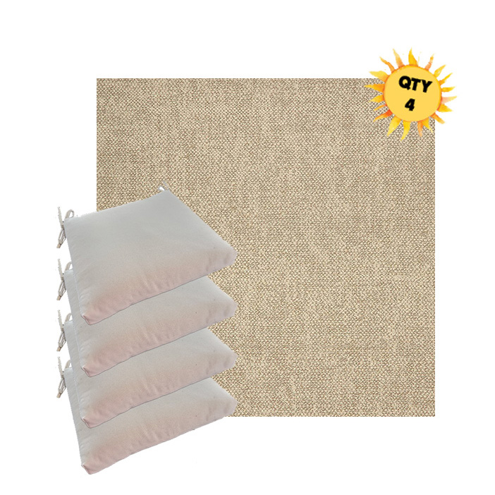 Sunbrella® Luxury Seat Cushions — Bundle of 4 (Custom Made) Upgrade your outdoor dining space with a coordinated set of four luxury Sunbrella® seat cushions, crafted in our most upscale Sunbrella fabric selections. These are made for patios that don’t do “average”—the kind of outdoor setting where every detail feels intentional, elevated, and unmistakably well-designed. Each bundle is custom made to order for a tailored look and feel, with premium construction designed for long-lasting comfort and performance. Choose from four versatile sizes to fit most outdoor dining chair styles, then select a higher-end Sunbrella® fabric that instantly sets your space apart from the run-of-the-mill cushion look.
