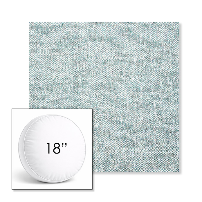 Custom 18" Round Boxed Sunbrella® Outdoor Pillow (3" Thick) available in over 700 Sunbrella® fabrics. Comes standard with piping. Optional covered button detail. Each pillow includes a zipper opening and premium outdoor insert for comfort, durability, and long-lasting outdoor performance.