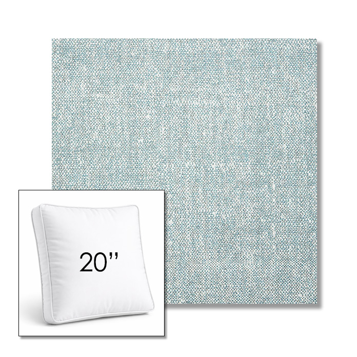 Custom 20" Square Boxed Sunbrella® Outdoor Pillow (3" Thick) available in over 700 Sunbrella® fabrics. Comes standard with piping. Optional covered button detail. Each pillow includes a zipper opening and premium outdoor insert for comfort, durability, and long-lasting outdoor performance.
