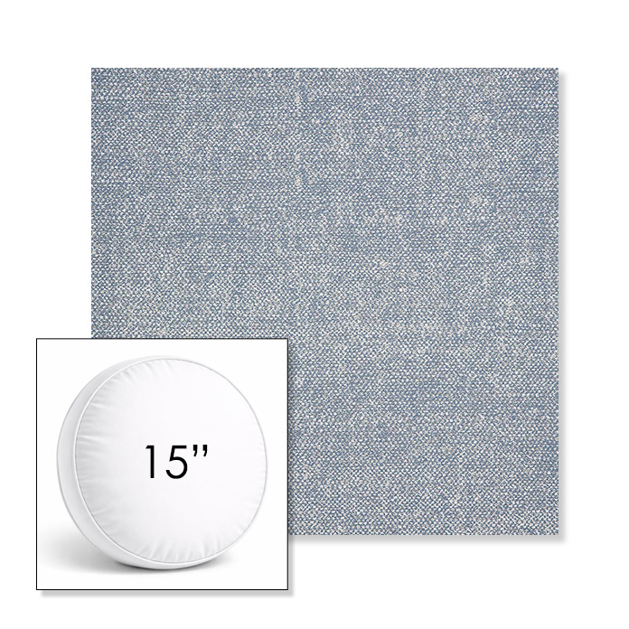 Custom 15" Round Boxed Sunbrella® Outdoor Pillow (3" Thick) available in over 700 Sunbrella® fabrics. Comes standard with piping. Optional covered button detail. Each pillow includes a zipper opening and premium outdoor insert for comfort, durability, and long-lasting outdoor performance.