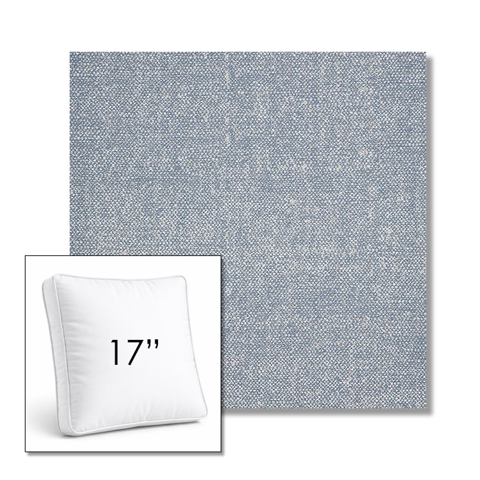 Custom 17" Square Boxed Sunbrella® Outdoor Pillow (3" Thick) available in over 700 Sunbrella® fabrics. Comes standard with piping. Optional covered button detail. Each pillow includes a zipper opening and premium outdoor insert for comfort, durability, and long-lasting outdoor performance.