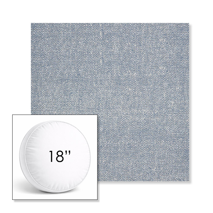 Custom 18" Round Boxed Sunbrella® Outdoor Pillow (3" Thick) available in over 700 Sunbrella® fabrics. Comes standard with piping. Optional covered button detail. Each pillow includes a zipper opening and premium outdoor insert for comfort, durability, and long-lasting outdoor performance.