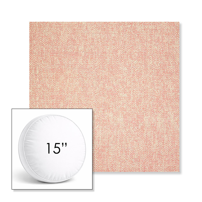 Custom 15" Round Boxed Sunbrella® Outdoor Pillow (3" Thick) available in over 700 Sunbrella® fabrics. Comes standard with piping. Optional covered button detail. Each pillow includes a zipper opening and premium outdoor insert for comfort, durability, and long-lasting outdoor performance.