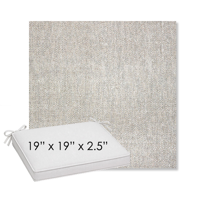 19" x 19" x 2.5" Thick outdoor dining chair seat cushion designed for a simple, ready-to-order fit. Features a boxed construction with piping, fabric ties, and zipper opening. Made in 700+ Sunbrella® fabrics for long-lasting outdoor performance.