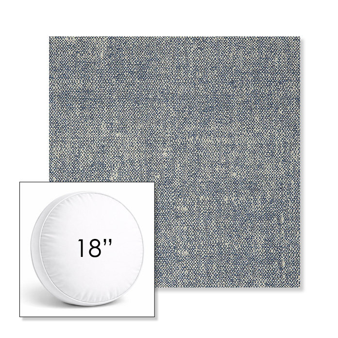 Custom 18" Round Boxed Sunbrella® Outdoor Pillow (3" Thick) available in over 700 Sunbrella® fabrics. Comes standard with piping. Optional covered button detail. Each pillow includes a zipper opening and premium outdoor insert for comfort, durability, and long-lasting outdoor performance.