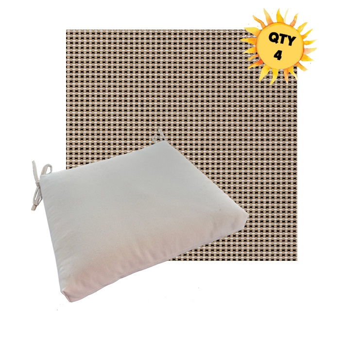 Each cushion is available in 4 universal sizes so you can choose the best fit for your existing outdoor dining furniture. A generous set of fabric ties keeps the cushion securely in place, even when people shift and move during meals. The interior features a combination of outdoor-rated foam and plush polyester fiber, creating a seat that feels soft yet supportive and holds its shape over time.