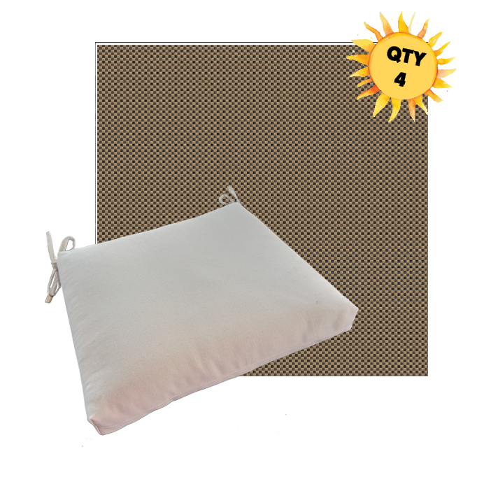 Each cushion is available in 4 universal sizes so you can choose the best fit for your existing outdoor dining furniture. A generous set of fabric ties keeps the cushion securely in place, even when people shift and move during meals. The interior features a combination of outdoor-rated foam and plush polyester fiber, creating a seat that feels soft yet supportive and holds its shape over time.