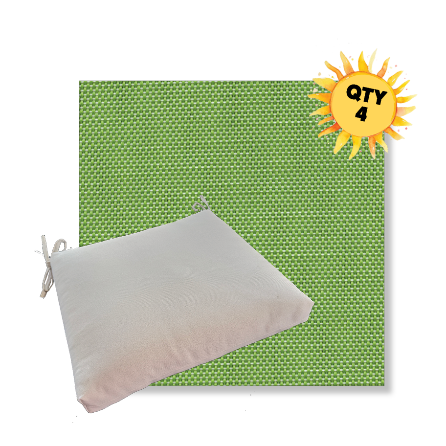 Each cushion is available in 4 universal sizes so you can choose the best fit for your existing outdoor dining furniture. A generous set of fabric ties keeps the cushion securely in place, even when people shift and move during meals. The interior features a combination of outdoor-rated foam and plush polyester fiber, creating a seat that feels soft yet supportive and holds its shape over time.