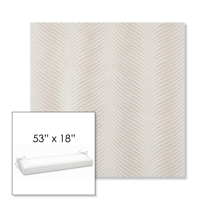 53" outdoor bench cushion designed for a simple, ready-to-order fit. Features a boxed construction with piping, fabric ties, and zipper opening. Made in 700+ Sunbrella® fabrics for long-lasting outdoor performance.