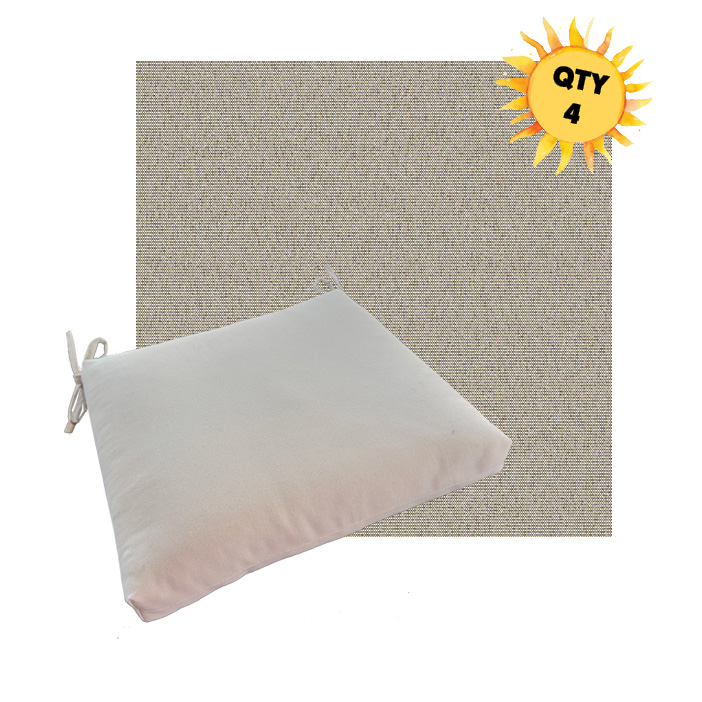 Each cushion is available in 4 universal sizes so you can choose the best fit for your existing outdoor dining furniture. A generous set of fabric ties keeps the cushion securely in place, even when people shift and move during meals. The interior features a combination of outdoor-rated foam and plush polyester fiber, creating a seat that feels soft yet supportive and holds its shape over time.
