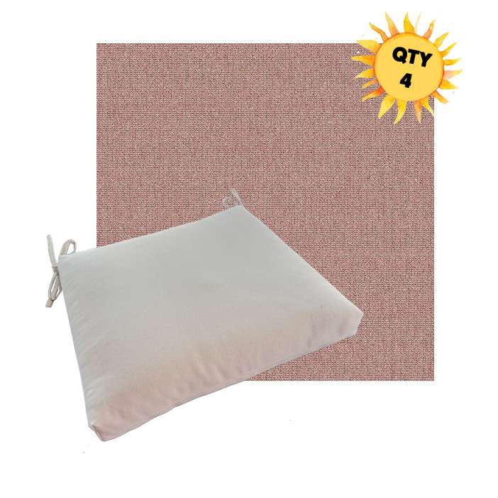Each cushion is available in 4 universal sizes so you can choose the best fit for your existing outdoor dining furniture. A generous set of fabric ties keeps the cushion securely in place, even when people shift and move during meals. The interior features a combination of outdoor-rated foam and plush polyester fiber, creating a seat that feels soft yet supportive and holds its shape over time.