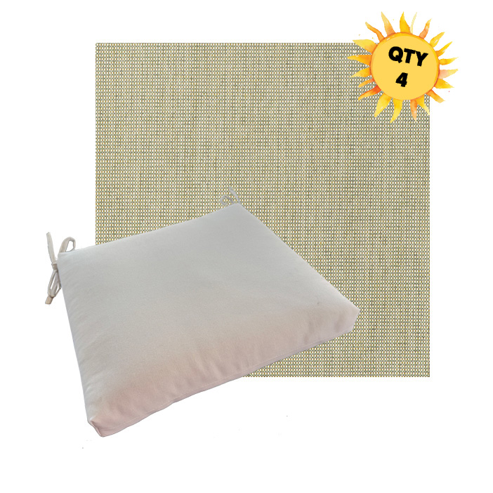 Available in 4 universal sizes with generous fabric ties and outdoor foam with polyester fiber fill—perfect for most patio dining chairs. Buy more and save on matching seat cushions for your outdoor space. All patio dining chair cushions are custom made to order in the size and fabric of your choice.