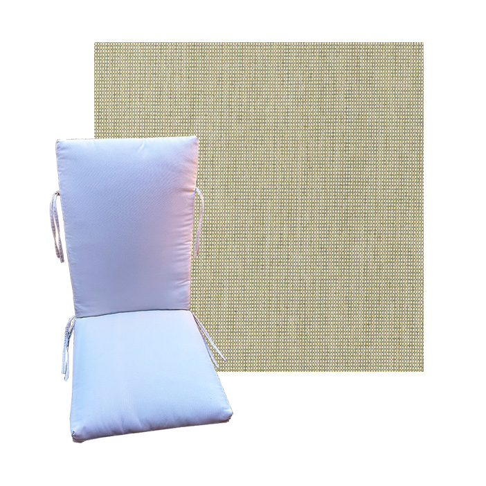 Order universal patio chair cushions in Outdura Outdoor Fabrics - Find a new colorful replacement cushion in 9 sizes - This style of patio chair cushion features a center seam, hinged design with fabric ties. These outdoor cushions are custom made to order in the fabric and size you need. See details on available sizes in the overview section below. BUY MORE and save.