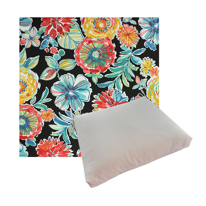 Universal outdoor dining chair seat cushion in Richloom Solarium® printed polyester. Available in 4 universal sizes with generous fabric ties and outdoor foam with polyester fiber fill—perfect for most patio dining chairs. Buy more and save on matching seat cushions for your outdoor space. All patio dining chair cushions are custom made to order in the size and fabric of your choice.