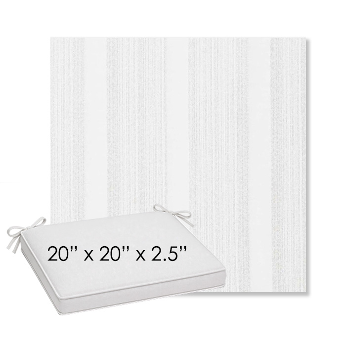 20" x 20" x 2.5" Thick outdoor dining chair seat cushion designed for a simple, ready-to-order fit. Features a boxed construction with piping, fabric ties, and zipper opening. Made in 700+ Sunbrella® fabrics for long-lasting outdoor performance.