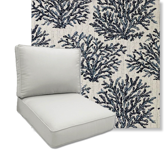 Our Easy order deep seating replacement cushion come in 4 common sizes and in beautiful outfoor printed polyester fabrics from Richloom Solarium..