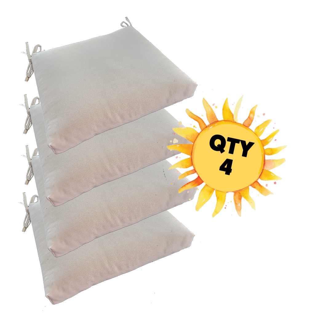 Each cushion is available in 4 universal sizes so you can choose the best fit for your existing outdoor dining furniture. A generous set of fabric ties keeps the cushion securely in place, even when people shift and move during meals. The interior features a combination of outdoor-rated foam and plush polyester fiber, creating a seat that feels soft yet supportive and holds its shape over time.