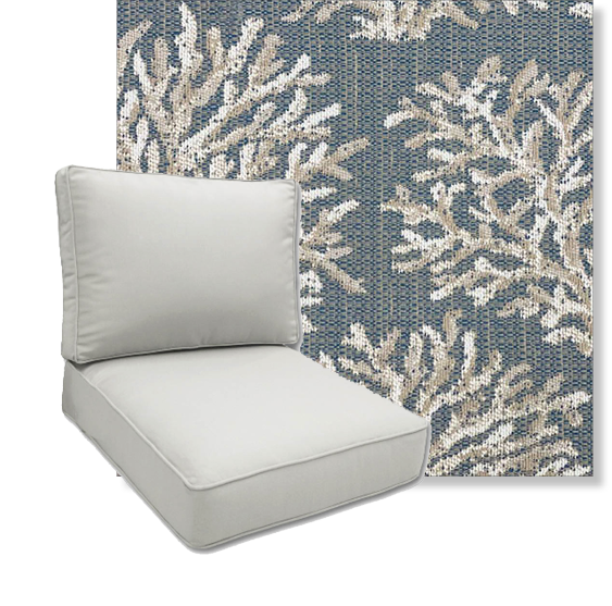 Our Easy order deep seating replacement cushion come in 4 common sizes and in beautiful outfoor printed polyester fabrics from Richloom Solarium..