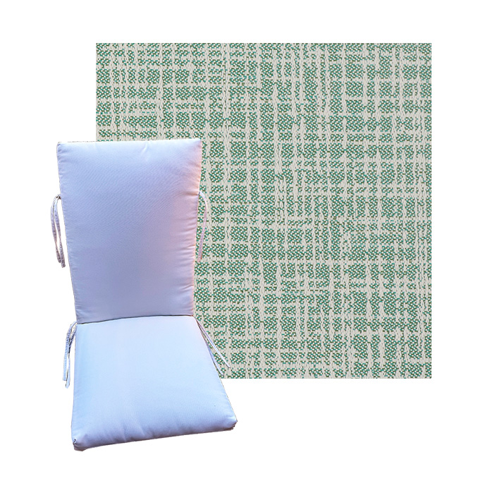 Order universal patio chair cushions in Outdura Outdoor Fabrics - Find a new colorful replacement cushion in 9 sizes - This style of patio chair cushion features a center seam, hinged design with fabric ties. These outdoor cushions are custom made to order in the fabric and size you need. See details on available sizes in the overview section below. BUY MORE and save.