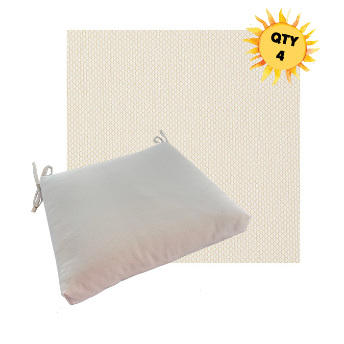 Each cushion is available in 4 universal sizes so you can choose the best fit for your existing outdoor dining furniture. A generous set of fabric ties keeps the cushion securely in place, even when people shift and move during meals. The interior features a combination of outdoor-rated foam and plush polyester fiber, creating a seat that feels soft yet supportive and holds its shape over time.