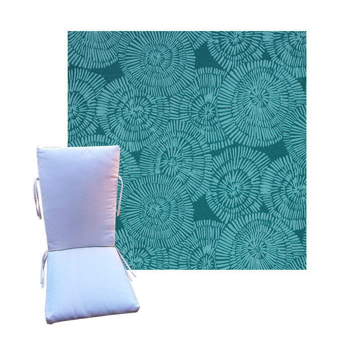 Order universal patio chair cushions in Richloom Solarium Outdoor Fabrics - Find a new colorful replacement cushion in 9 sizes - This style of patio chair cushion features a center seam, hinged design with fabric ties. These outdoor cushions are custom made to order in the fabric and size you need.