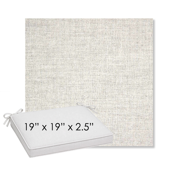 19" x 19" x 2.5" Thick outdoor dining chair seat cushion designed for a simple, ready-to-order fit. Features a boxed construction with piping, fabric ties, and zipper opening. Made in 700+ Sunbrella® fabrics for long-lasting outdoor performance.