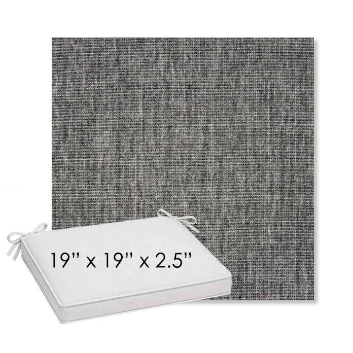 19" x 19" x 2.5" Thick outdoor dining chair seat cushion designed for a simple, ready-to-order fit. Features a boxed construction with piping, fabric ties, and zipper opening. Made in 700+ Sunbrella® fabrics for long-lasting outdoor performance.