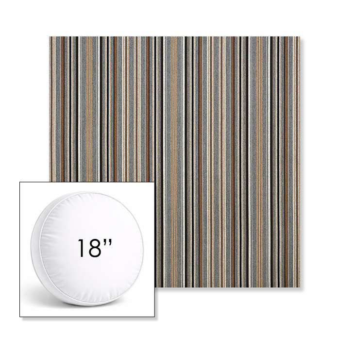 Custom 18" Round Boxed Sunbrella® Outdoor Pillow (3" Thick) available in over 700 Sunbrella® fabrics. Comes standard with piping. Optional covered button detail. Each pillow includes a zipper opening and premium outdoor insert for comfort, durability, and long-lasting outdoor performance.