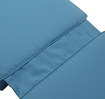 Why settle for cheap, big box store replacement cushions in limited fabric choices and that don't fit your patio furniture? Build you Chaise Lounge replacement cushion your way. Start the custom outdoor cushion design process by following our step-by-step instructions below. Each chaise lounge includes fabric loop ties at the back and seat and a fabric hinge to hold that back and seat sections together. This is a premium quality chaise lounge. Boxedchaise