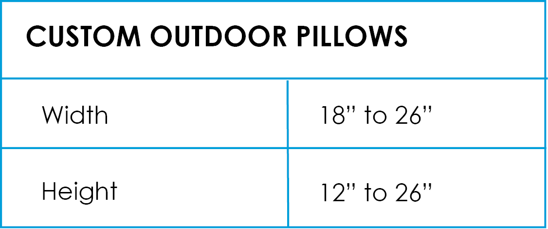 Why settle for stock outdoor pillows n one size fits all. Many outdoor patio furntiure styles use a oversized plump pillow as the back cushion instead of a traditional boxed style. Order the exact size outdoor pillow your need to compliment your patio furniture. Update the look of your patio dining space with the perfect custom outdoor patio pillow..