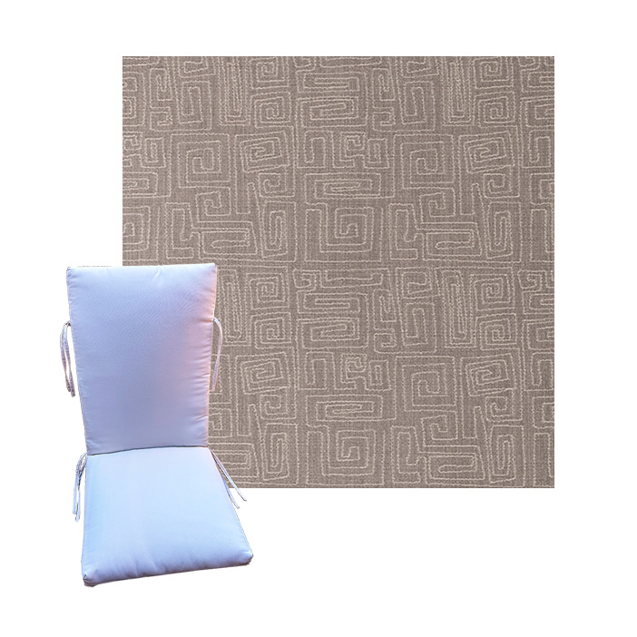 Order universal patio chair cushions in Sunbrella Outdoor Fabrics - Find a new colorful replacement cushion in 9 sizes - This style of patio chair cushion features a center seam, hinged design with fabric ties. These outdoor cushions are custom made to order in the fabric and size you need.