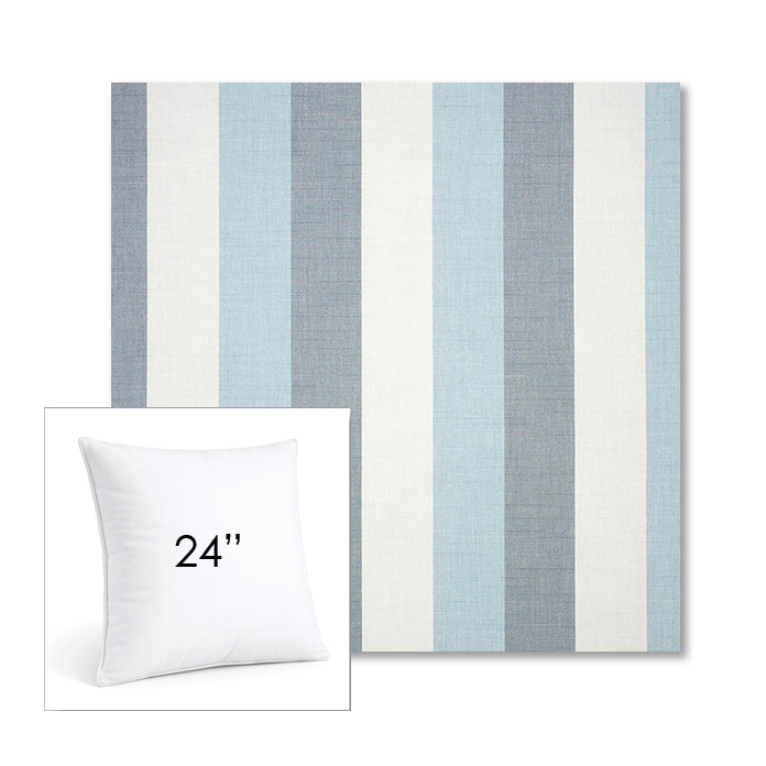 Custom 24" square outdoor pillows available in over 700 Sunbrella® fabrics. Choose piping or knife-edge finish with optional covered button detail. Each pillow includes a zipper opening and premium outdoor insert for comfort, durability, and long-lasting outdoor performance.