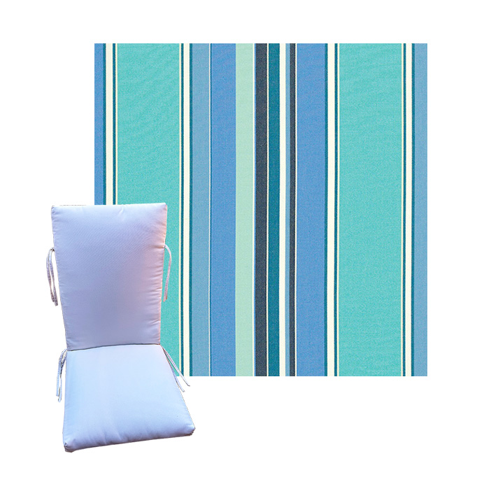 Order universal patio chair cushions in Sunbrella Outdoor Fabrics - Find a new colorful replacement cushion in 9 sizes - This style of patio chair cushion features a center seam, hinged design with fabric ties. These outdoor cushions are custom made to order in the fabric and size you need.